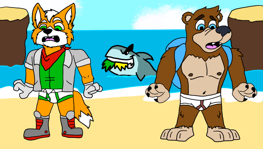 Banjo was showing Fox around Treasure Trove Cove when they got attacked by Snacker the Shark! They thought they made it to the shore unscathed... until they felt a breeze...