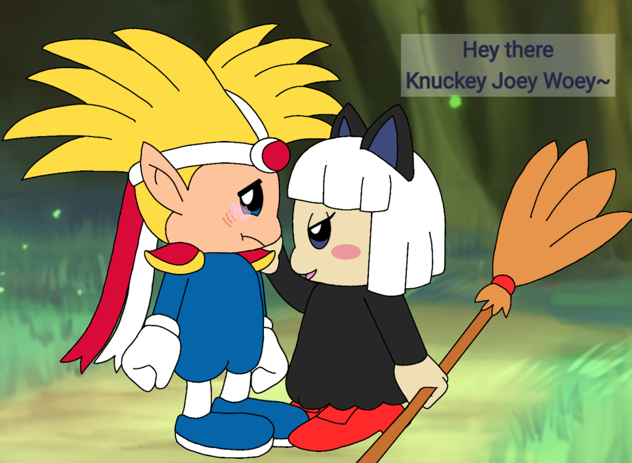 Here are Thoma and Maya in fighter clothes. This is a direct reference to the fact Knuckle Joe is officially a Fighter enemy in the Kirby series.