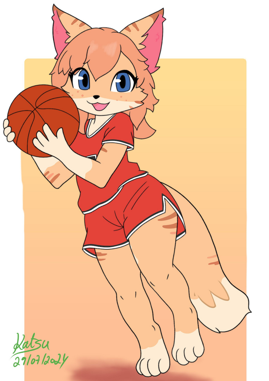 Happy kitty is pleased to play a basketball game with you, wanna join her? :3