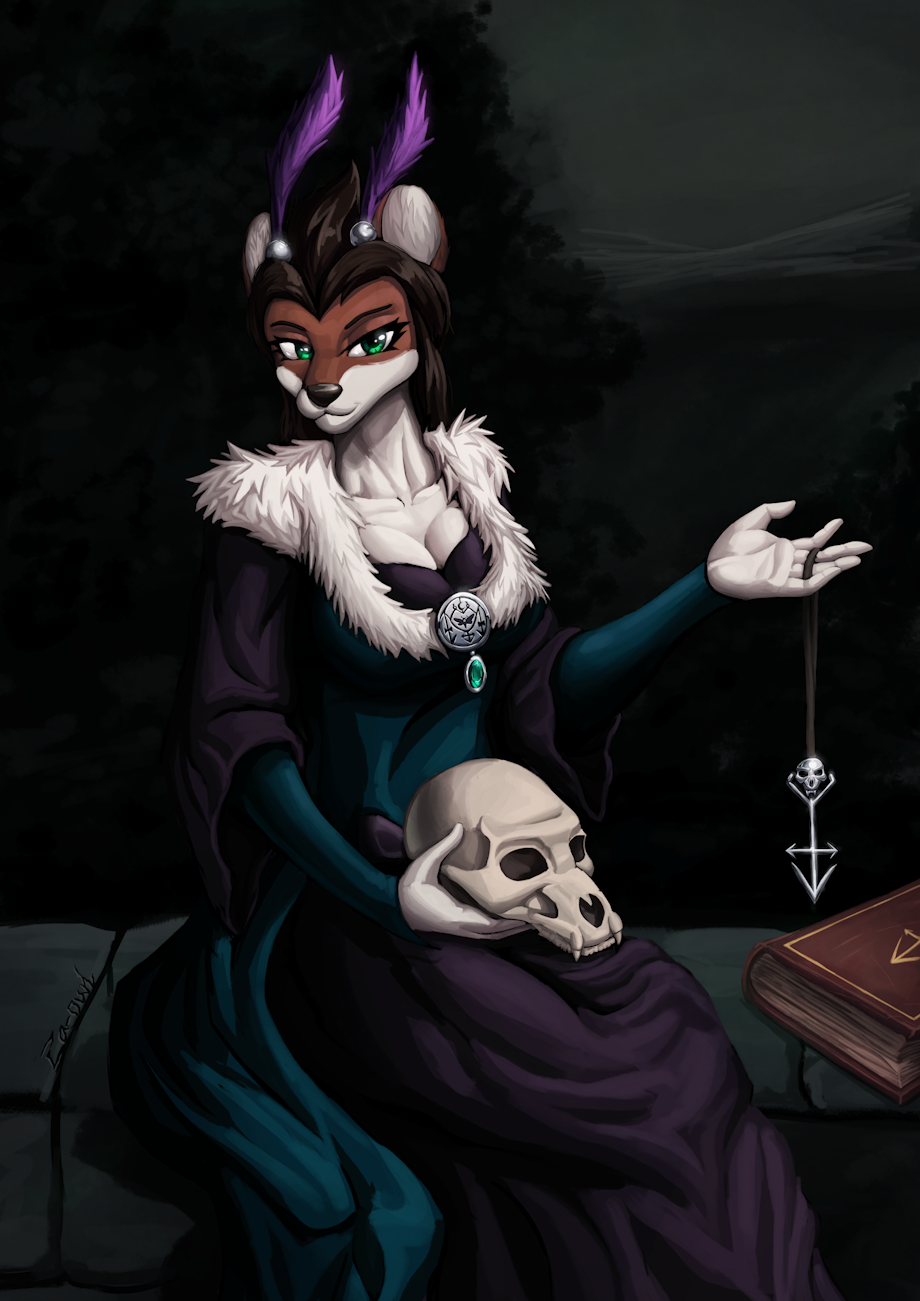 In her mid 30s, Priscilla’s husband died of an infection, leaving her with his estate but no children. Grief stricken at first, she vowed to find her late husband’s soul in the great beyond. However, in time Priscilla learned to let go of him, and her mind was instead set on learning more of the ‘death magic’. Her knowledge and skills grew in the pursuit of some powerful breakthrough with the guidance of the benevolent entity in her dreams.