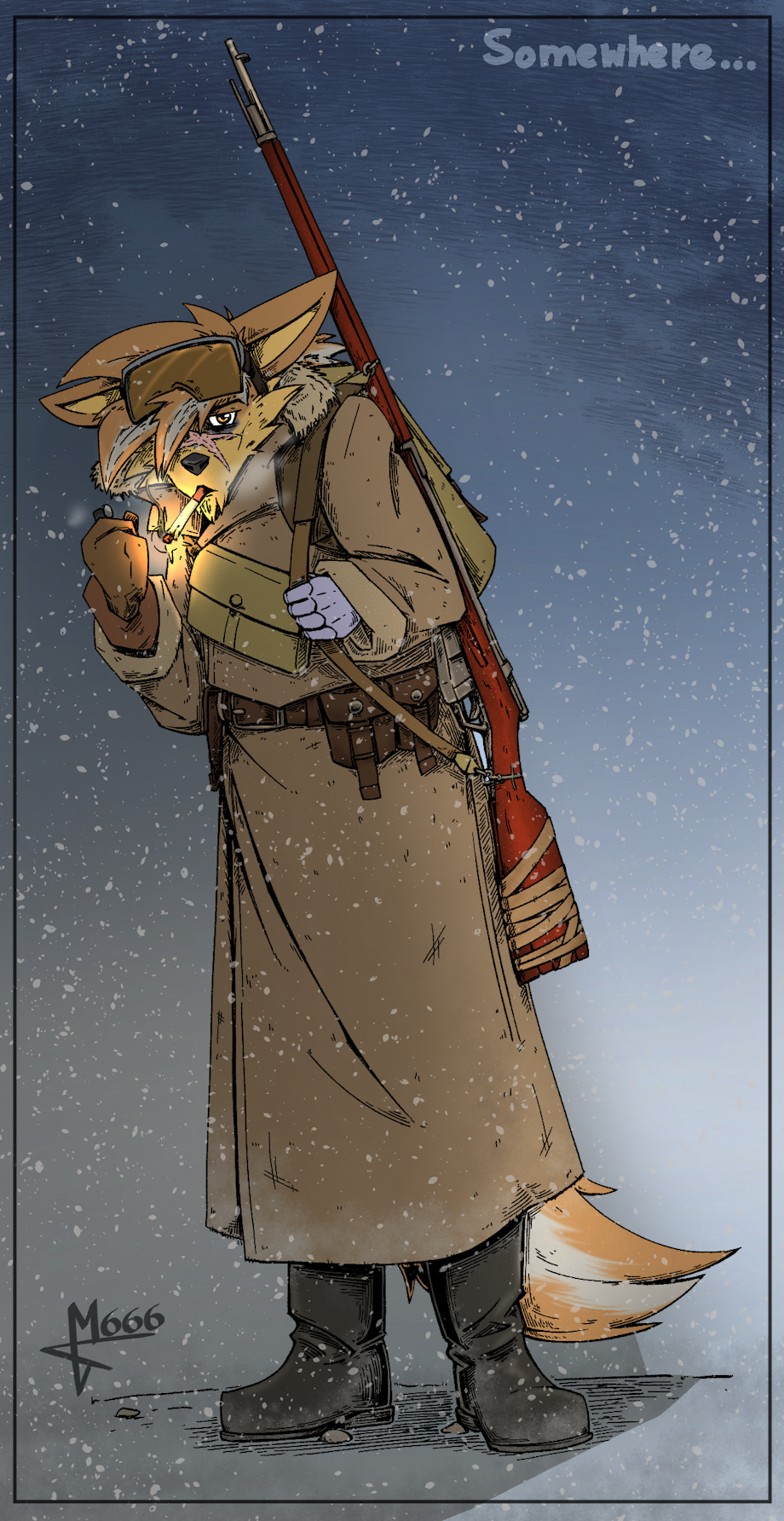 Commission for storyhopper from Discord. A alt universe version of their sona/character in timeline where they've been enlisted since young age and mostly only knew battlefield. Also with more soviet military uniform influences.
