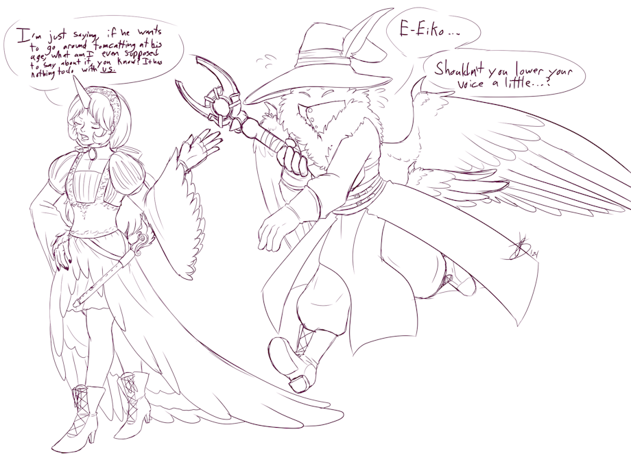 Some rare "human" art. An accidental redraw I did of a previous piece from like ten years ago of an older Vivi and Eiko. Vivi's design got very little changed about it but Eiko's is almost completely different.