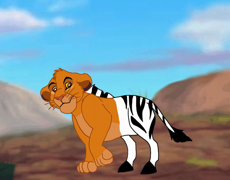 I've been meaning to experiment with Simba turning into zebra. Or partial zebra, in this case.