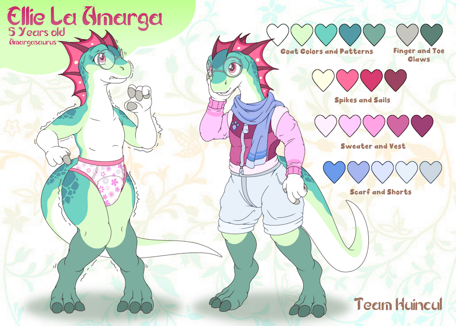 While not exactly a member of Hell Creek, I consider Ellie to be one of the main characters in the series, as I feel like any dino squad needs a sauropod! and as she's a sauropod, she's taller than the other members of Hell Creek (Except for one...). I decided to go with an Amargasaurus because it's one of the most interesting looking longnecks, I went with a style similar to Ark's version, where it's a mix of spikes and a very short sail near the base.