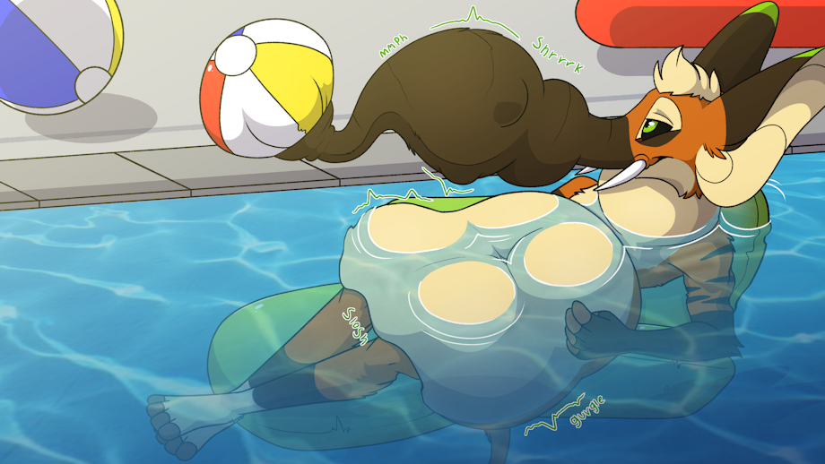 Is he eating people with the trunk or just beach balls? Or both? Or Neither?