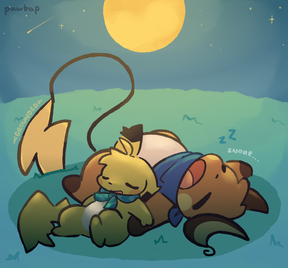 A cute picture drawn by pawbap, of our Chus having a cozy night together.