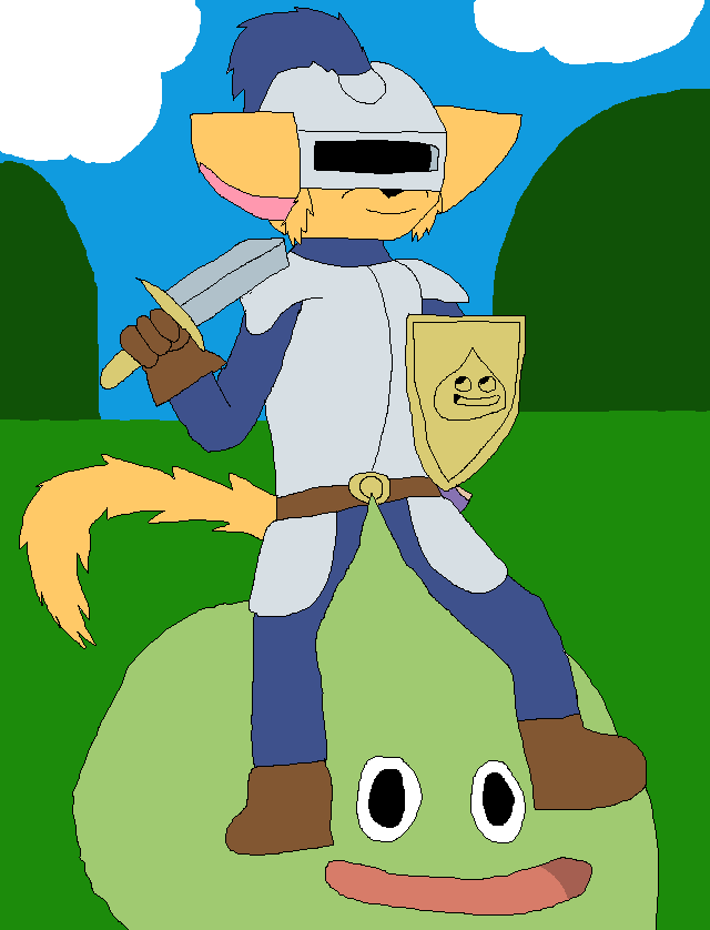 Here Gaki is dressed up as an Slime knight from the Dragon quest series.