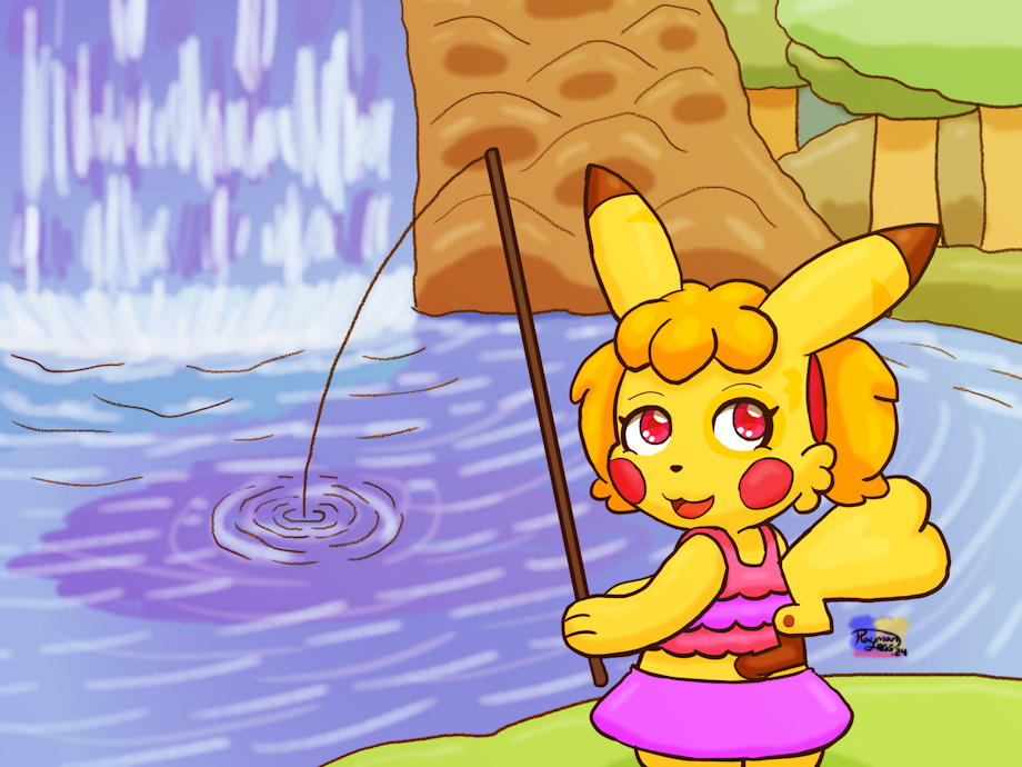 After a long day, Chloe approaches the waterfall, and takes a shower, the little force that falls the water, and how cool it is, helps her to relax.