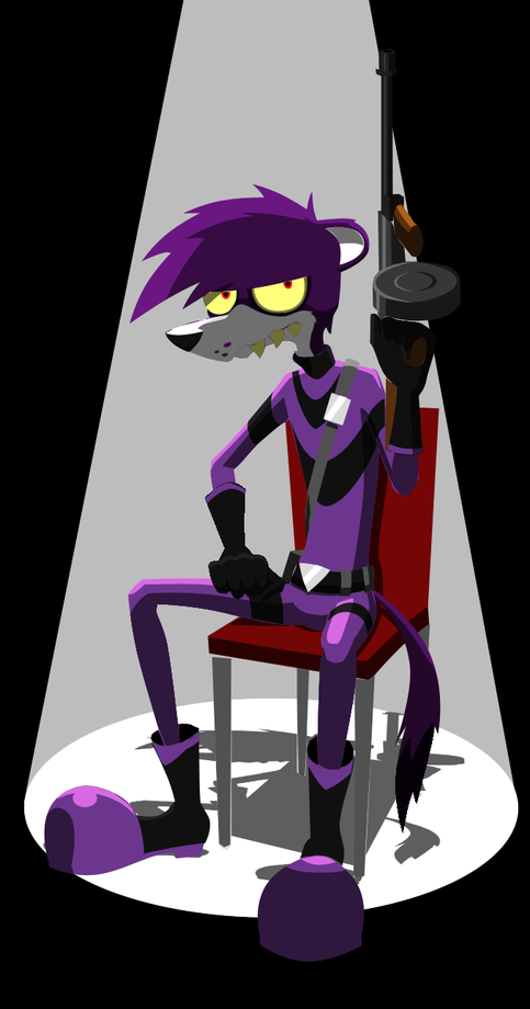Another long-tailed weasel only this time with purple fur! Rinaldi is Frankie's stepbrother and the lead interrogator for the vigilante team; he fights with that tommy gun of his and a switchblade, though he could really use a medium-range weapon, too. He used to be a chain-smoker but has recently forced himself to cut down significantly on said habit as a result of increasing lung problems. A cigarette or two ain't so bad every once in a while, is it?