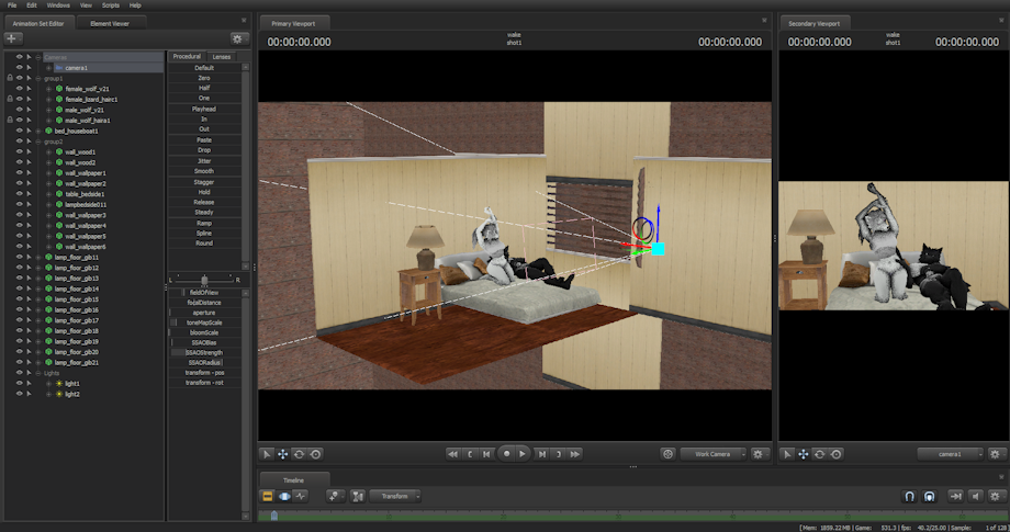 This is how "Morning Stretch" looks like outside of camera view. The only purpose for right wall is to create shadow and mimic window shutter. Furniture comes along with core SFM and wall/floor tiles are from: https://steamcommunity.com/sharedfi...../?id=529777792 The map is called "black_void.bsp" and as the name suggests it's just big fully dark empty space. Because of it I use it sometimes, when I want to have control over light.