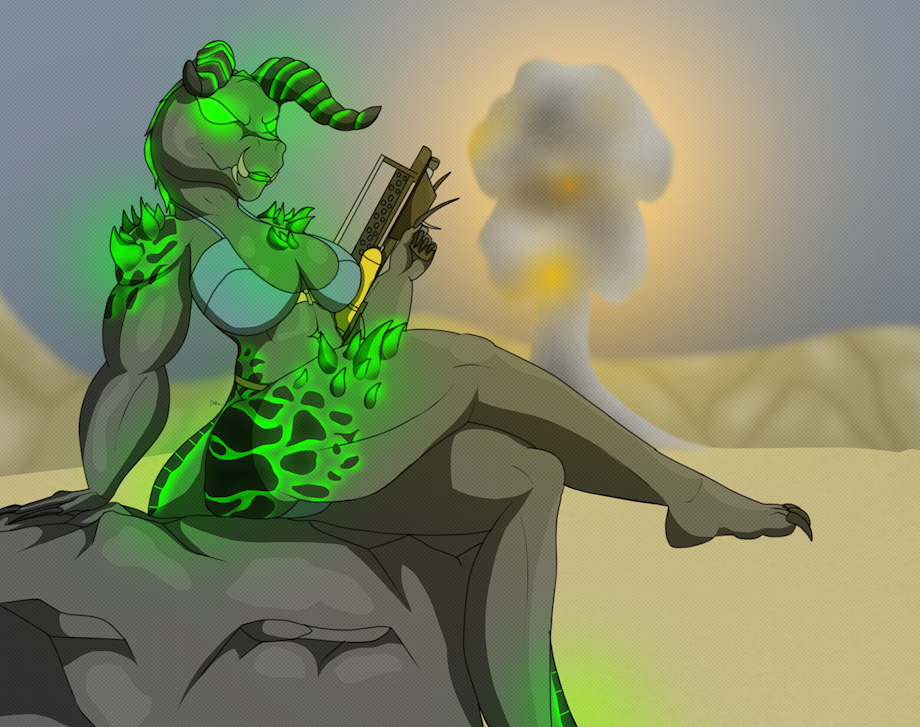 A Deathclaw, but it's more 'motherly' shaped and found a funny bomb launcher that makes Geiger counters click.