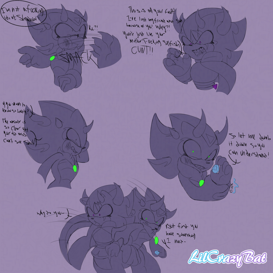 Doom wasn't a perfect father but he was a single dad doing everything. So he prioritized on the son that's more important to the future. He didn't care what happened to Mephiles. He had to get him in trouble and sadly Sukos mother was at the right place at the wrong time. Does Shadow feel bad? Maybe. But it worked. So he didn't care. His rings have been improved since "Flowe" but he learned how to remove them. He keeps them updated but he often doesn't care about them. So he gets violent outbursts. His shard is getting messy now holding more power that's not his So the rings basically don't even work most days. Now that he's on his own he can say whatever that works. And luckily Sukos young. Still a childs mind that can be molded. Technically this was supposed to be the last part of the past but you reminded me I should do a follow up of the new arrangement. Wonder how Suko feels about all this. Thank goodness the elders are watching over him.