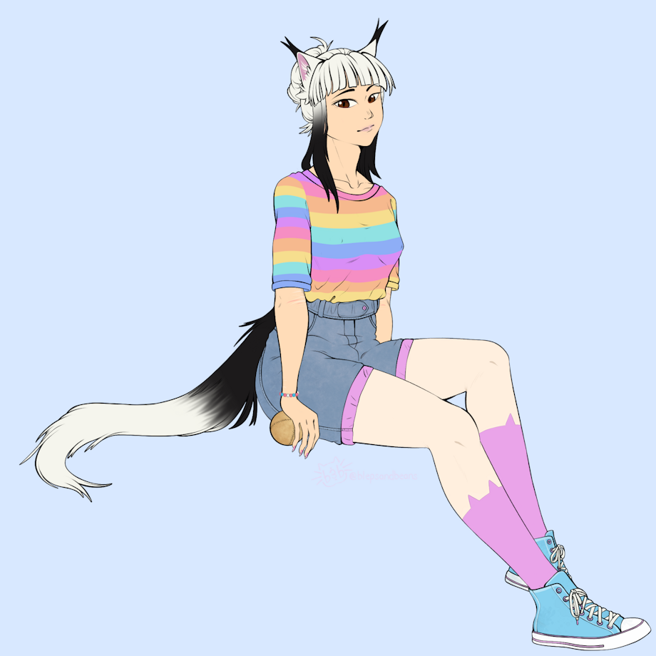 It was really fun trying to copy the lineart style of the base for the hair, tail, ears and clothes! Gave her a baseball because she loves baseball. ❤️