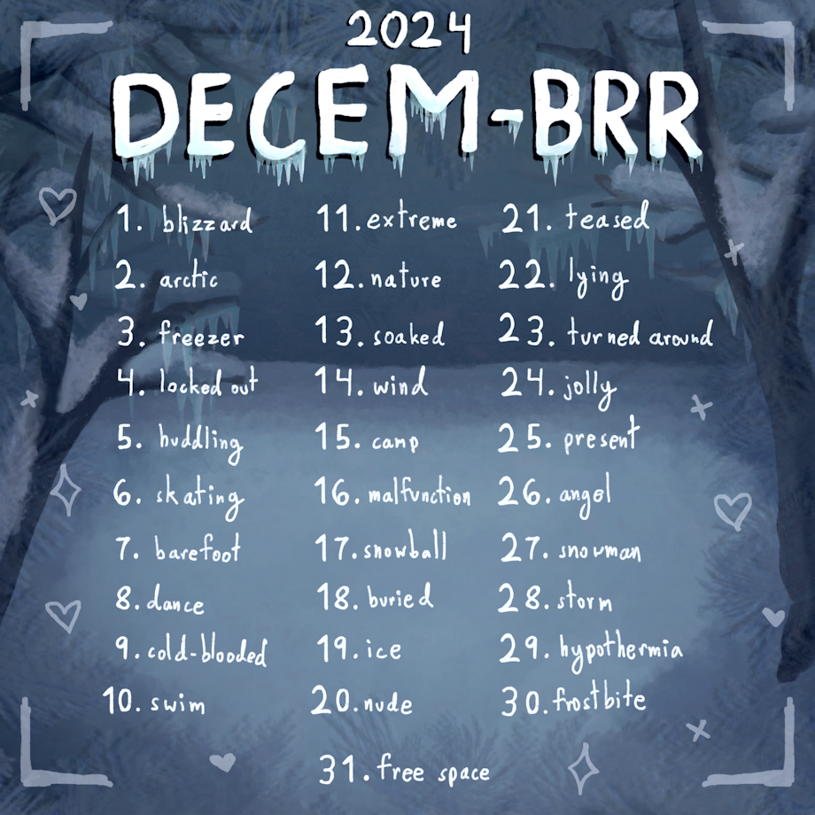 Decem-Brrr is an Inktober-style event where, for each day of December, you're given a prompt that you can interpret however you like. It's mostly about girls in the cold, since that's the community it started from, but it can be anything you like, really, it would be great if more people participated this year! :)