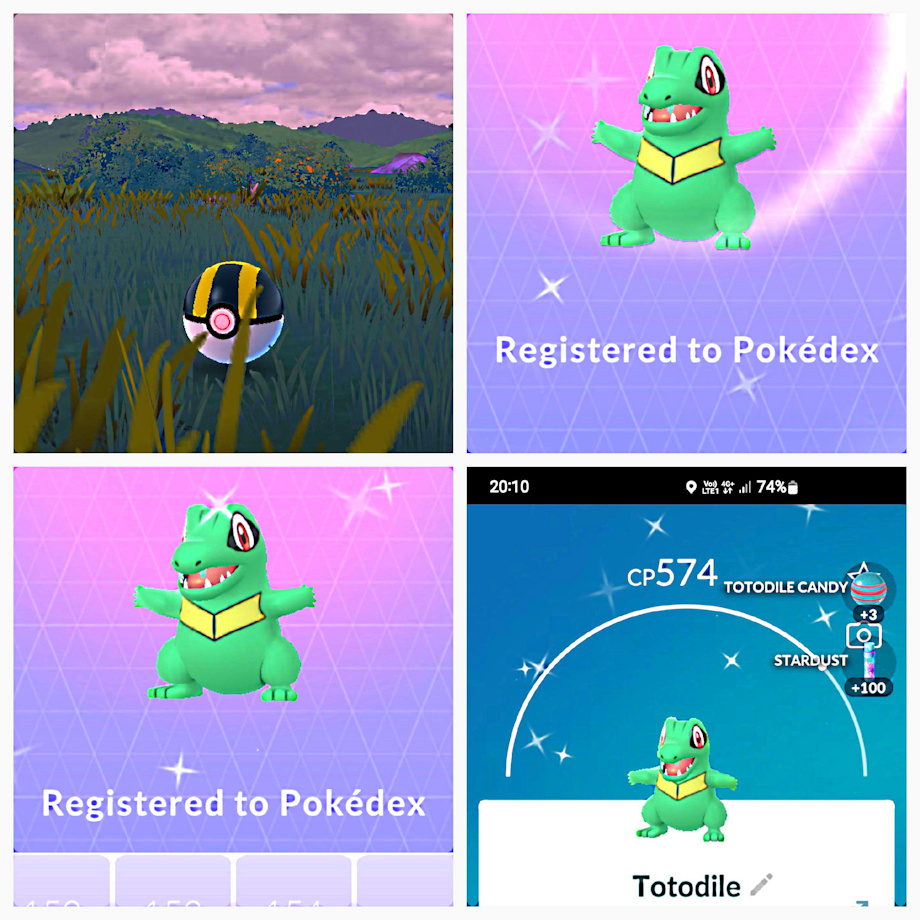 hey guys!!! Yesterday it finally happened I caught my very first shiny in Pokemon GO!!! Anyway I have pokemon go since the first day it came out but since a couple of months ago I have been giving it more attention casually opening the app seeing if there are some new pokemon or if I'm lucky hopefully so I went to Italy I went to Spain on vacation everywhere I go I always turn on the app but I'm never lucky until yesterday I was at my cousin's house in my town and when he took a cigarette break I thought might check pokemon go and there was a totodile but the minute I faced it I directly knew it was a shiny so without hesitation I directly threw a ultra ball caught it in one catch <3<3<3 I'm so happy that one of the coolest pokemon I know is one of my first shiny in Pokemon go