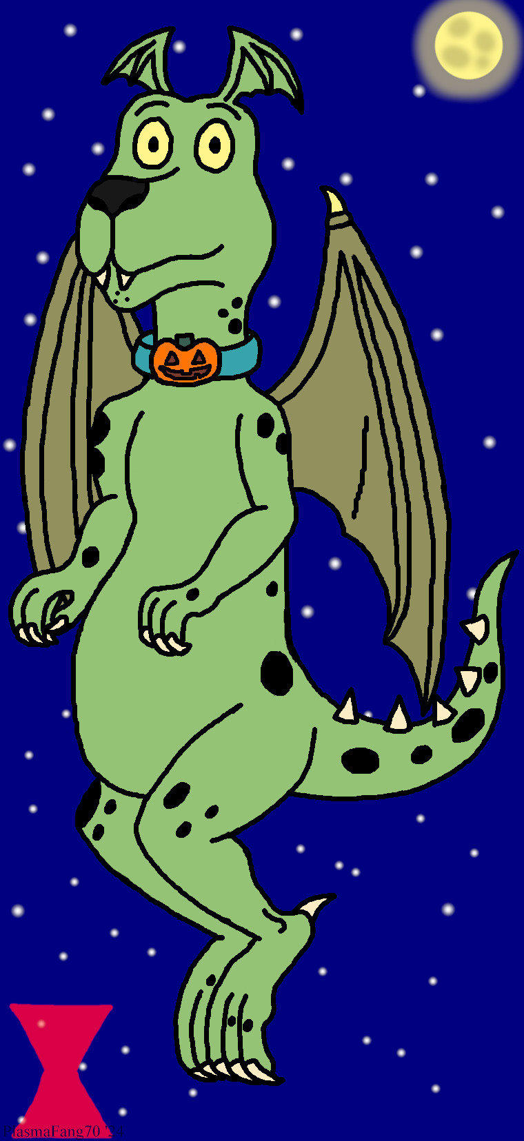 A pic I wanted to draw of Scooby-Doo in his goblin form from the Goblin King film flying in the night sky.