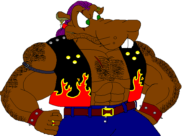 In the pic I tried to imagine as a brawny tough-as-nails biker