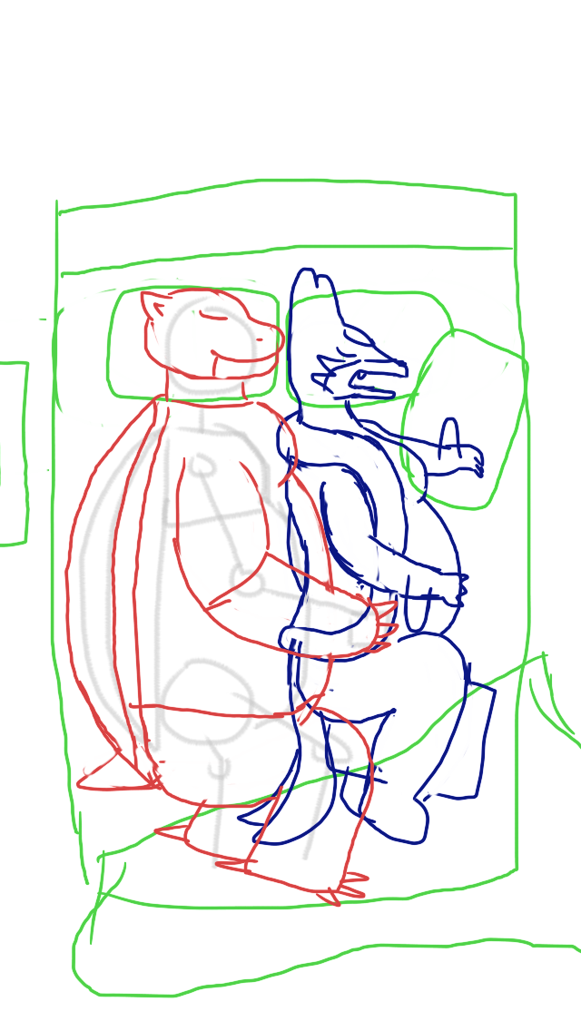 Just a nice sketch of Floatzel mom snuggling with her hubby! (The irony of messing up my sleep schedule by drawing characters sleeping isn’t lost on me lol)