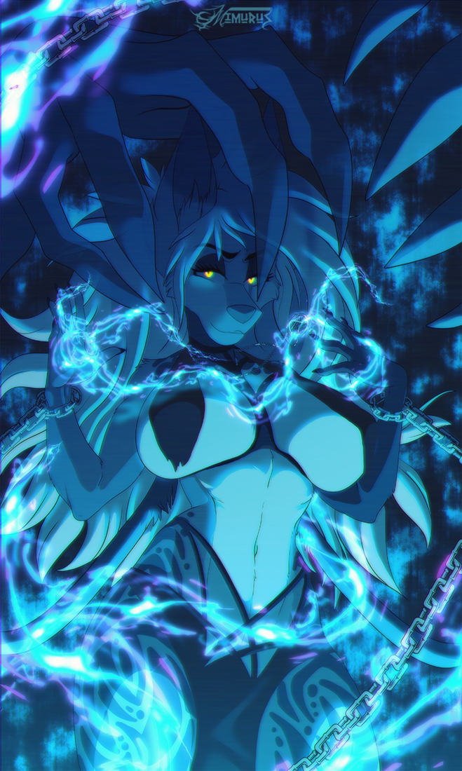 Miru unleashing her magical abilities to escape imprisonment from a shattered realm.