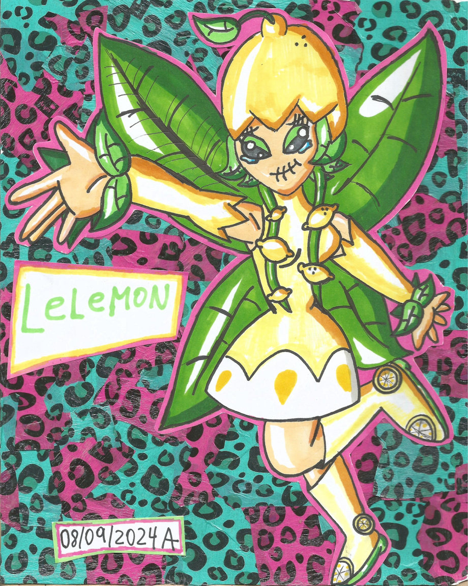 Based on a personal joke I had when I was like 11 and I watched digimon (Lillymon but Lelemon. You know. They sound almost the same just for a couple of letters and I gave him the lemon face from The Simpsons because it's very funny) Now that I can draw something decent I can afford to draw everything I've ever thought of in my life.