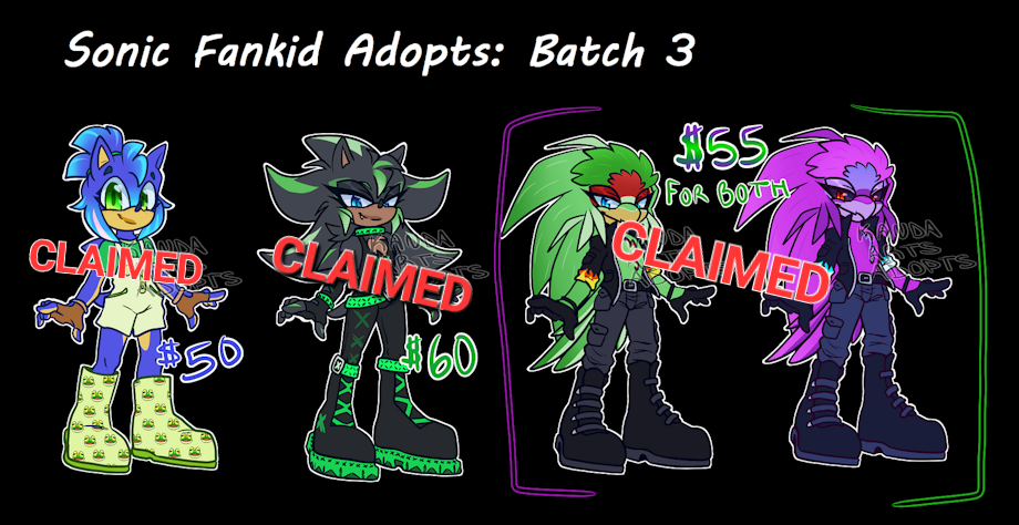 I take suggestions! I plan to do some fall adopts next and then maybe a few more fankid ideas. I still have a list of pairings to get through, but I'm always willing to add more!