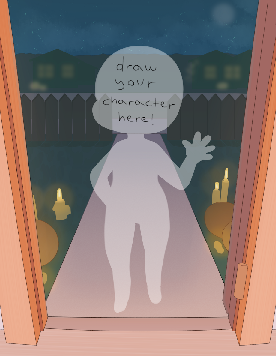 example: day 1: vampire say you really want to draw anais watterson dressed as a vampire. you can write her name in the character list for day 1. when october 1st rolls around, you draw anais dressed as a vampire trick of treating over the background i provided. ... rinse and repeat for the whole month of october!
