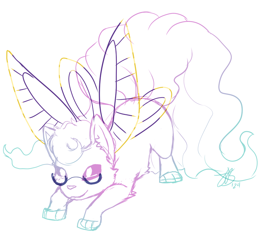 Some random sketches of a friend's lovely fairy-type Vulpix. Their mom was a Galarian Rapidash. <3
