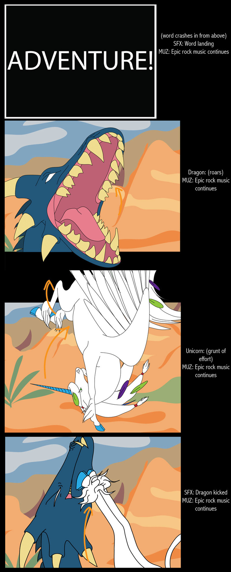 ACTION! Now THIS was an event to make! So, here's my first portfolio piece for school, for my storyboarding class. There's 22 frames in all, all put together in one week.