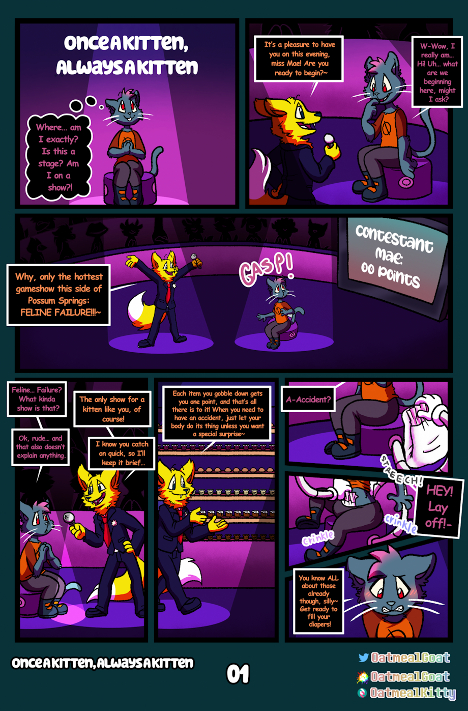 Lookie another comic about that cat everyone likes! This one will be a few pages long but will release slowly, kinda like Snickers uwu