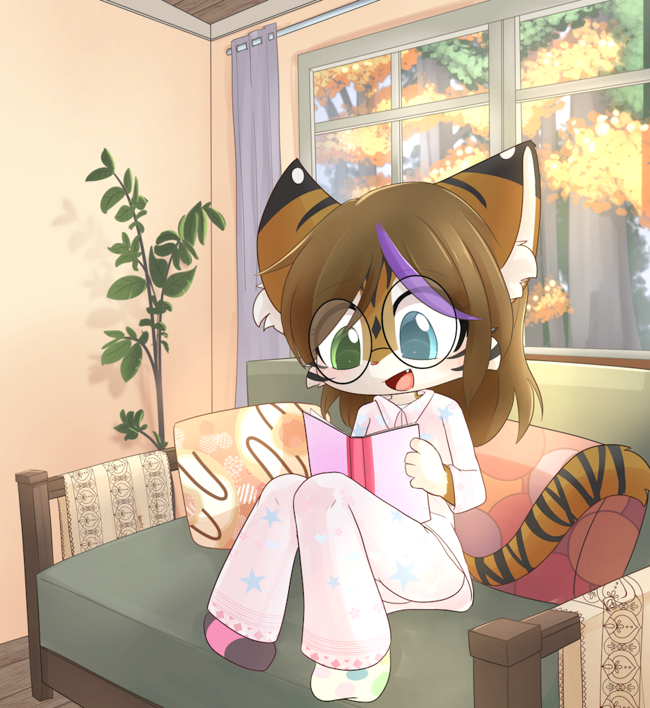 Oh heya. Is this your OC/fursona, out of interest? I’ve got to say I adore her design, especially the stripe patterns on the tail and face. They feel quite different to 'typical' tiger stripes and I love how they look. :)