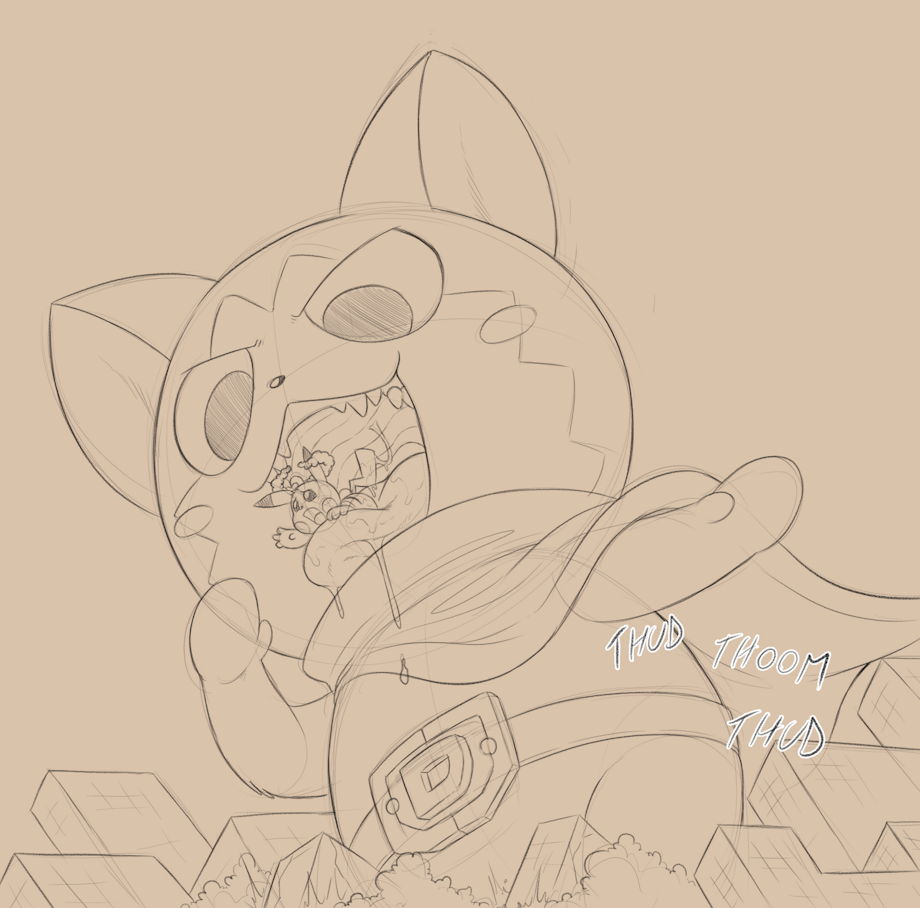 An oldish commish. it's bad when the competition cheats! Dynamax Pikas are supposed to be big and strong, not be snacks for a cat yokai ;w;