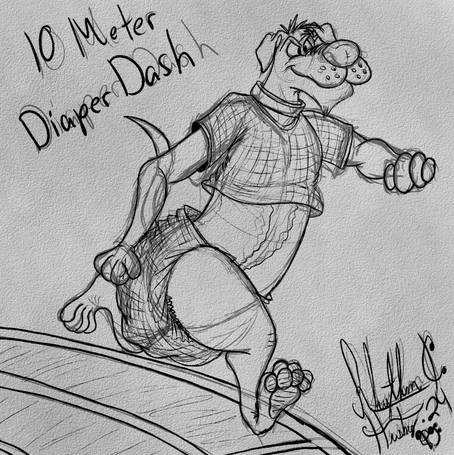Here is a pup running a 10 meter dash or a 10 meter diaper dash that is he calls it since he runs in a shirt and a diaper.