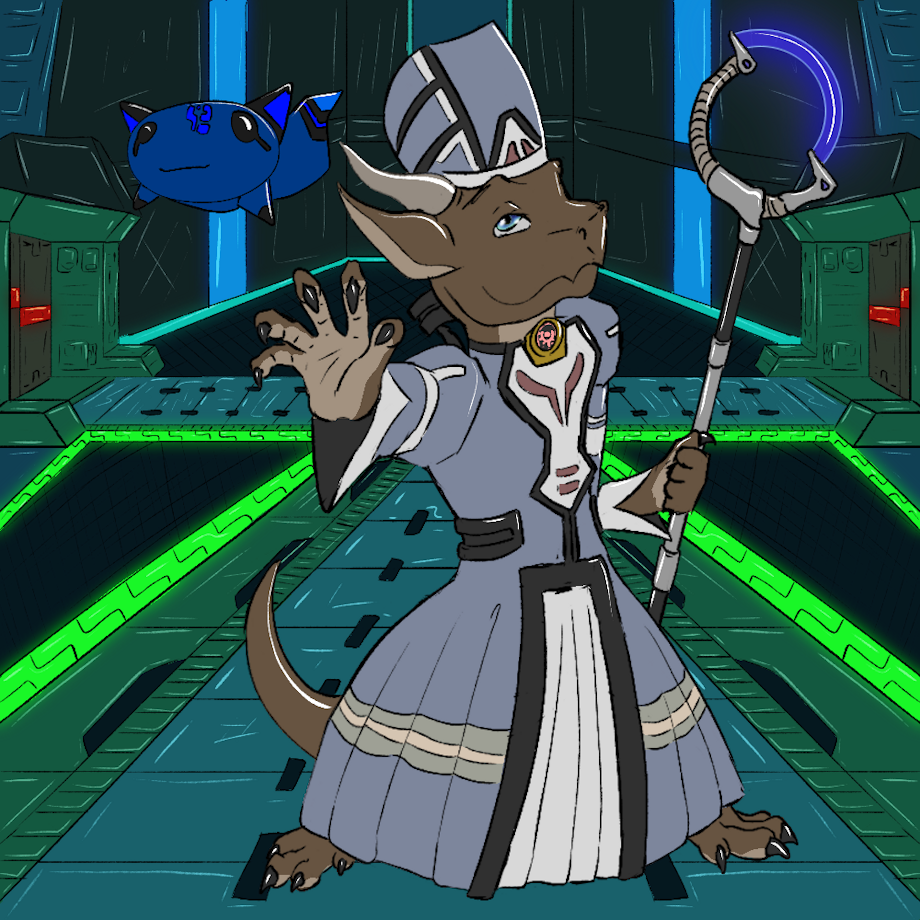 A friend and I have been scratching the nostalgia itch and playing a little PSOBB. I of course, had to draw a kobold wearing some PSO gear.