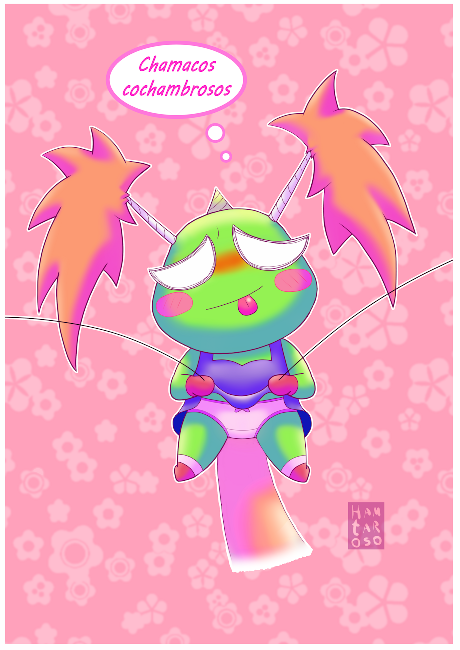 A puppet girl from the anime Koni chan, very popular in LatAm. The text says "dirty boys". She can't move without a hand inside of her.