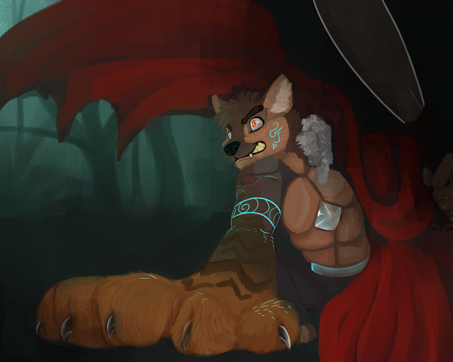 This was an old piece done by an anon friend of Neves unleashing his wild side! He's a Lunar Exalt, they can change their forms freely and sometimes, a weapon can't do the job large claws can!