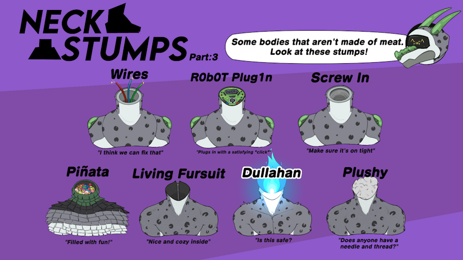 I know there's so many more neck stumps I didn't cover. I have a whole list of them. But this project was taking a long time, so this felt like a good stopping point. Please give the artist lots of love for this. They were very patient with me as we went over so many refinements for the first appearance of my robot form. ^^;