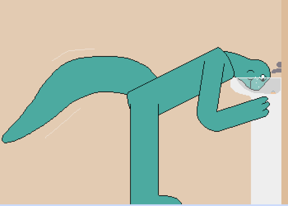 Without a private pool or a public one anywhere nearby, and not even a bathtub for him to fill, this water-loving lizard's taken to some strange measures to enjoy some underwater breath holding.