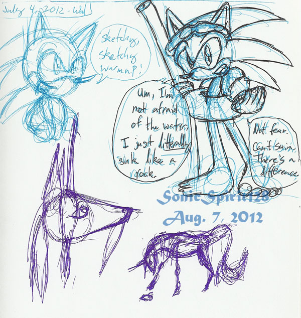 Whoa...was totally thinking about this AGAIN last night. Anyway. I know it was in the official information released about Sonic back in the day, but Sonic's supposed phobia of water's never played a part into Sega's official work. Now, I WILL give you that for a guy who lives and dies by running and being mobile, and who likes breathing, being underwater, and having that movement stymied and being unable to break the surface and BREATHE would MAJORLY SUCK. But water's NOT the problem there. Being trapped and stuck is.