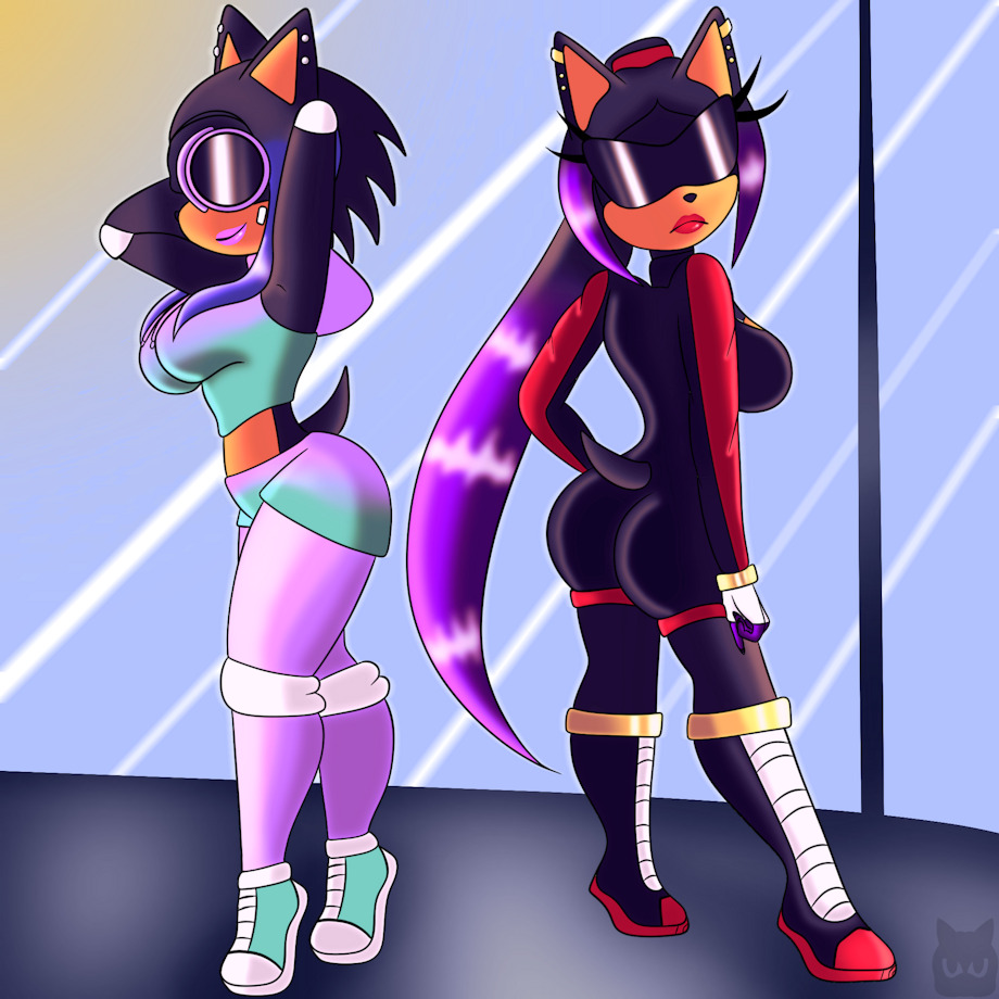 Karida and Night are wearing their rider outfits and looking cute and sexy.