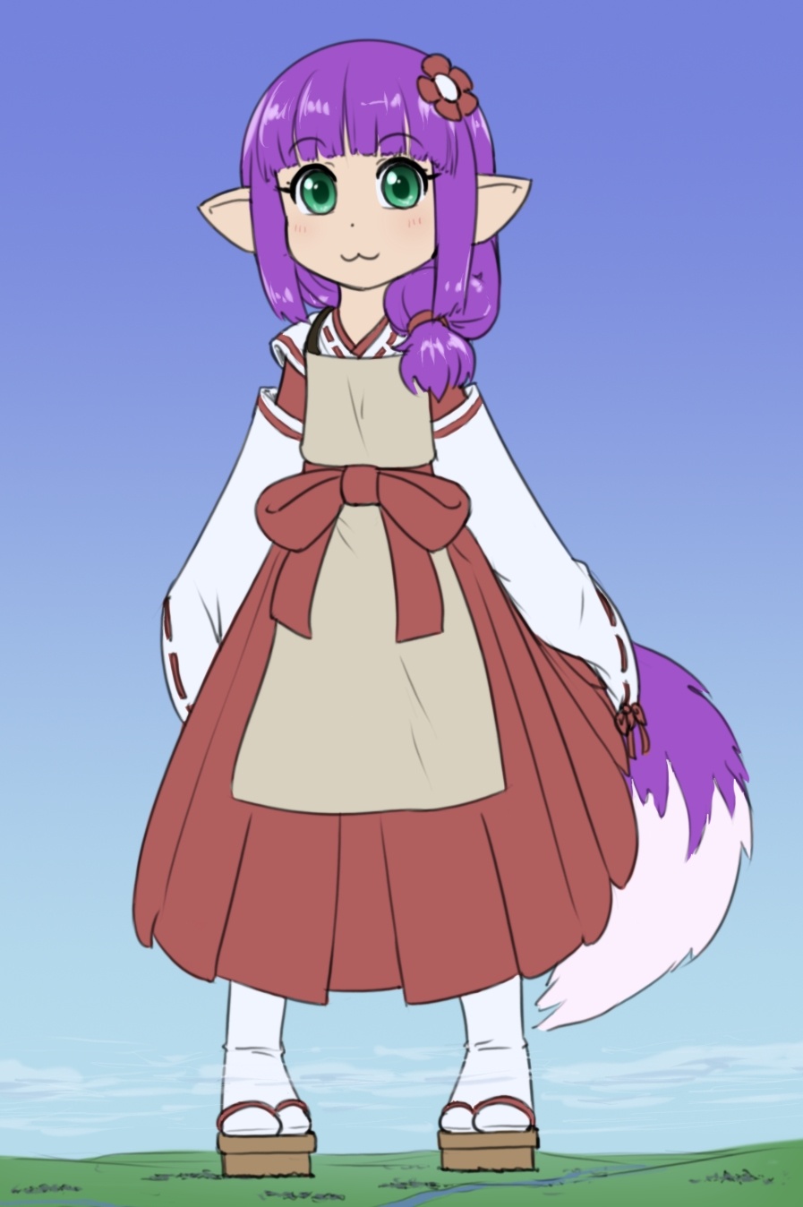Awwww, she looks great in Senko's outfit! Fun miko outfit, and the scale is shockingly huge! Having the entire cloud layer only come up to her ankles is rare, plus it means her tabi sandals don't even need true platforms to completely and utterly eclipse every hint of civilization around! Even the highest hill almost looks as flat as her from so far away!