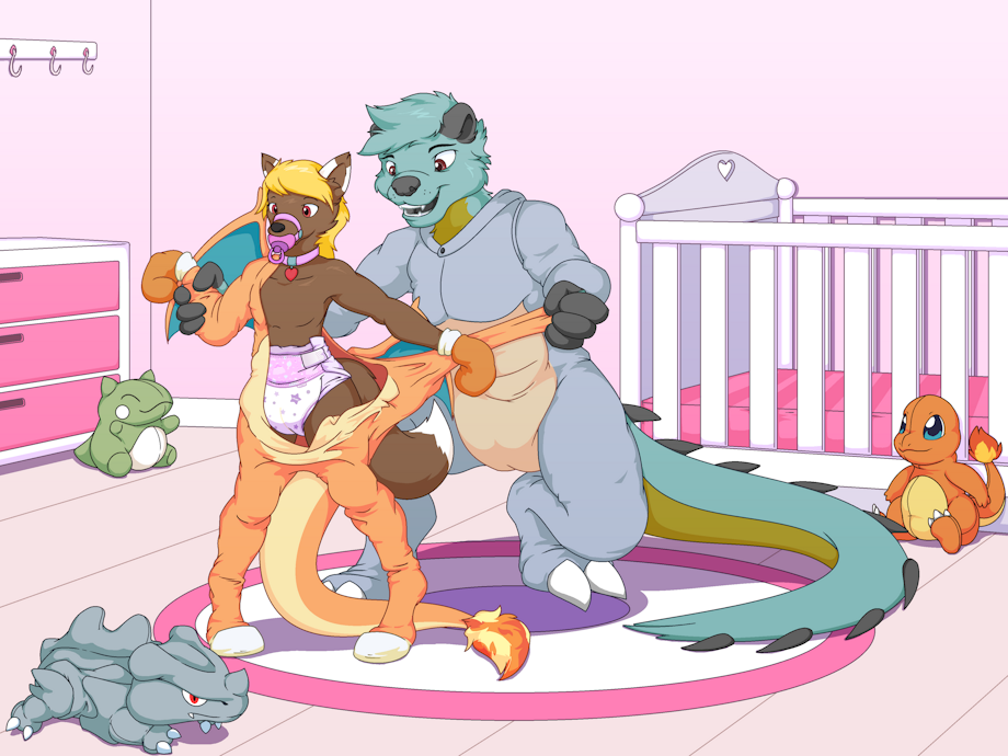 The two get dressed for sleepy time in their pokemon sleepers in a nursery!