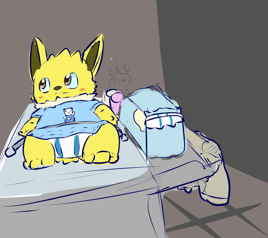 I resumed a first attempt at the changing table for Umbreon, now with the participation of Jolton.