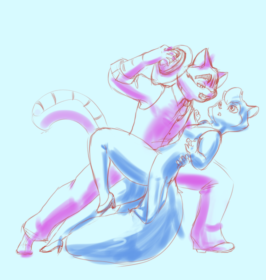 Rocky from Lackadaisy and Sawyer from Cats Don't Dance... dancing. Guess the do dance.