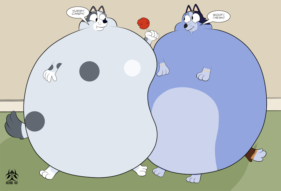 Muffin and Socks had just came back home after going on their 1st trick-or-treating, and began hogging the candy. As they eat, their bodies started to swell & get round. Their costumes started to rip as they got bigger until their nothing but shreds. But that was OK with Socks & Muffin as they became big round puppies. "Yummy candy!" Muffin shouted excitedly. Socks barked in agreement.