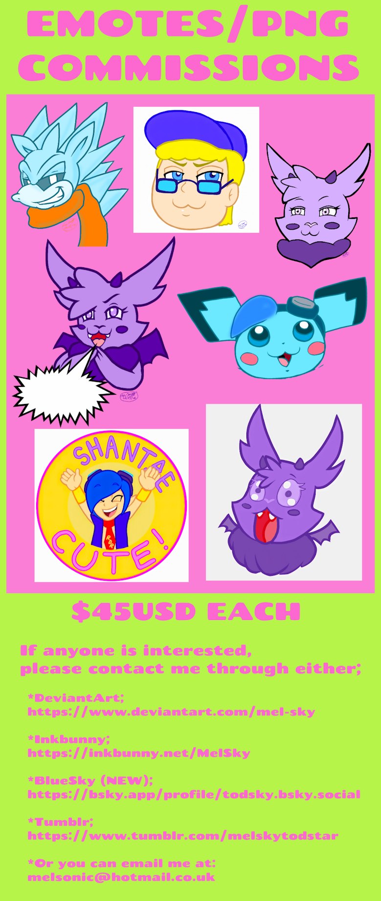 Now that I know how to do transparent PNG art, I thought I give making emotes & PNG commissions a try: