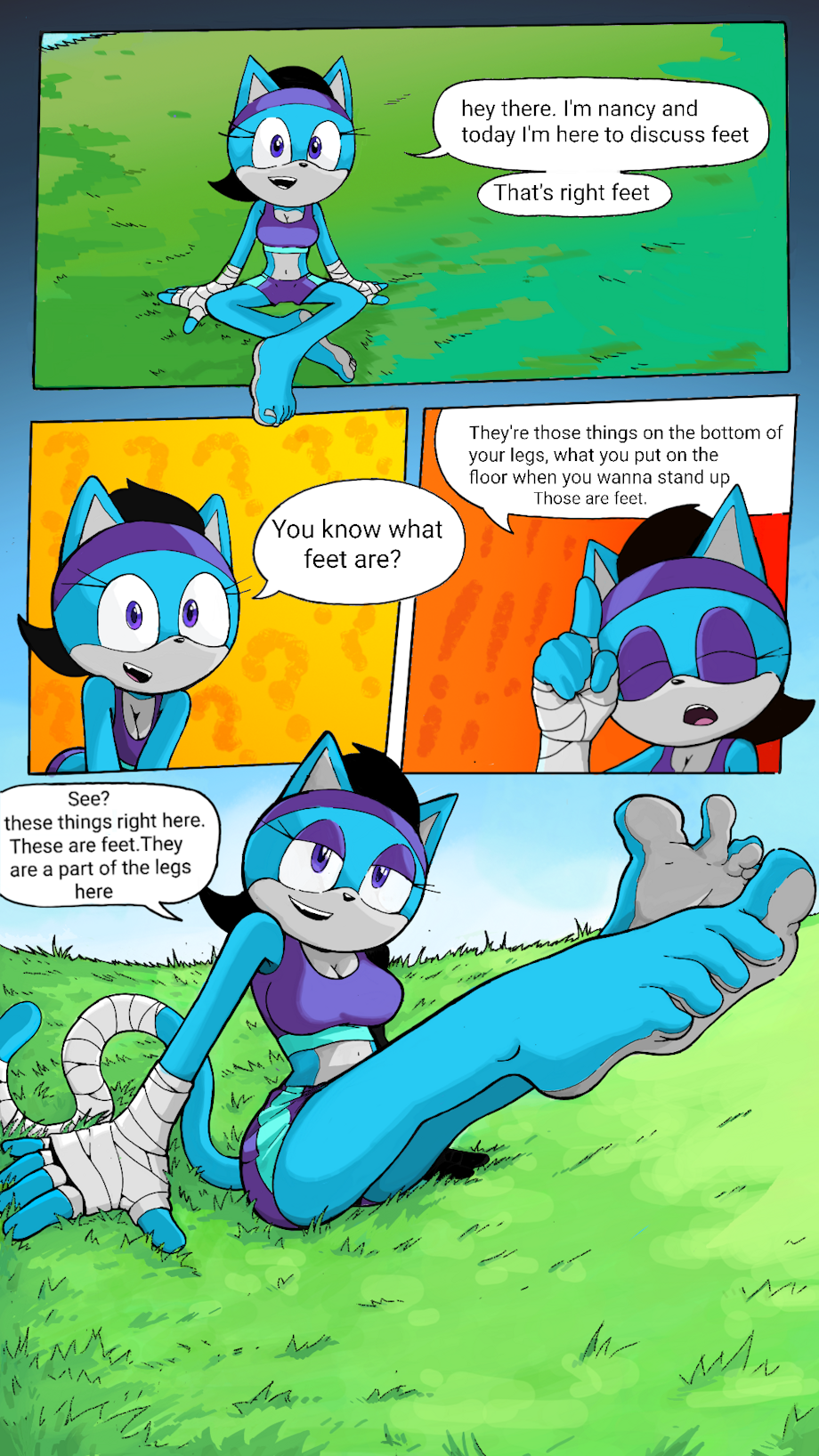 This is a 7-page comic starring my OC Nancy the Panther demonstrating what feet can do.