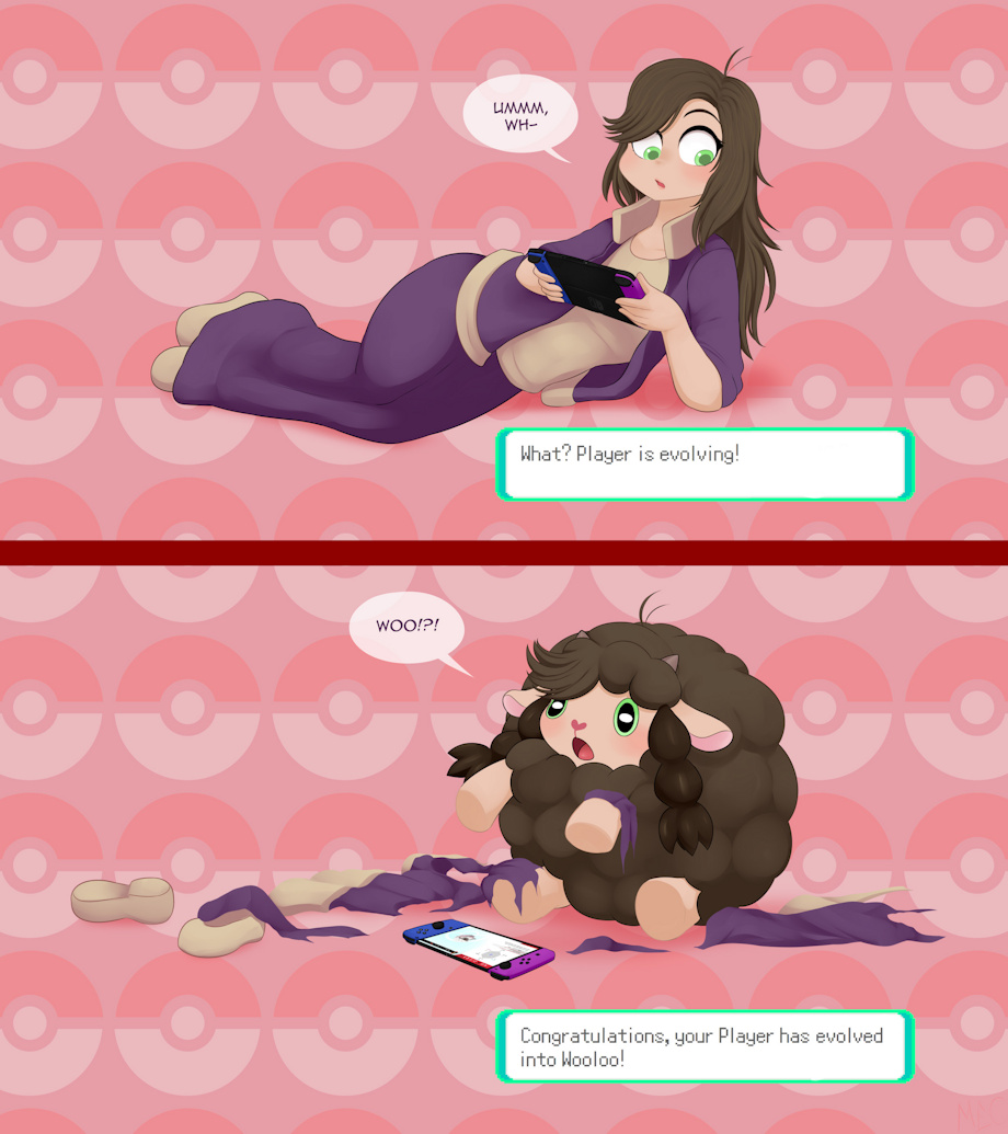 got a pic of herself, transforming into a Wooloo while playing Pokemon on her Switch, I hate it when that happens >:c