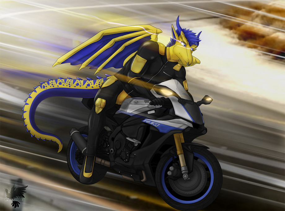 He's got an advantage...If he starts to loose control of the bike, he can quickly spread his wings and fly clear of the situation.