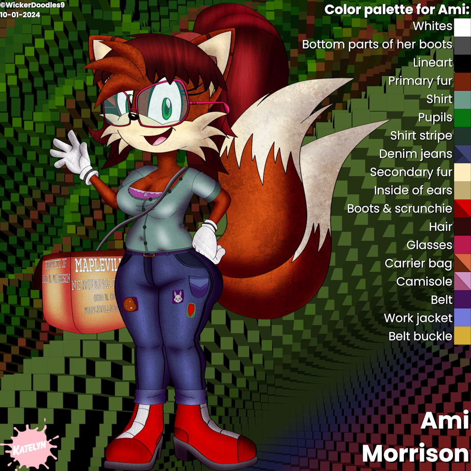It wasn't fun for myself especially, but I got over it over the past three or so days with my feeling like I'm in pain, but I got Ami all done tonight as of October 2nd, 2024. I started working on her back on September 26th and finished her tonight as of writing this, plus I tweaked her color palette, as you can see here.
