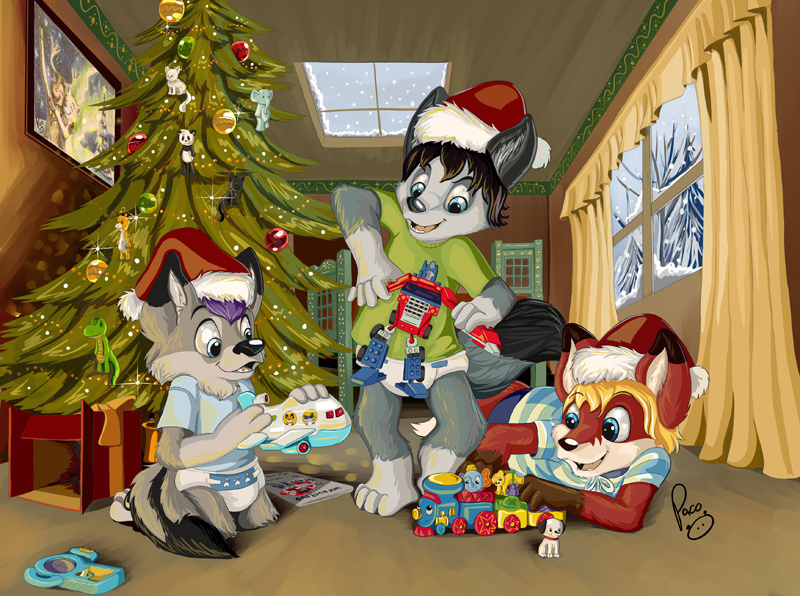 me, Loupy, and Wolfy playing with they uncovered toys after the opening of they Xmas Gifties =D